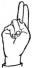 На ћирилици написано МИЛОМИРА ПОСТОЛОВИЋ састоји се из 18 слова [?]. Исписано ћириличном једноручном азбуком за глувонеме: